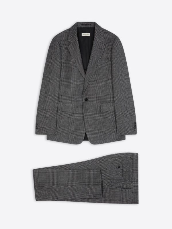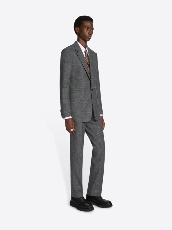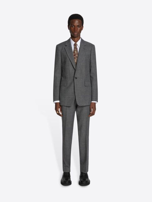 Regular fit with soft shoulders for all-day comfort. Mid rise trousers with straight leg silhouette. Single-breasted design with front flap pockets and welt pocket at chest. Finished with buttoned cuffs and single vent. Secure front button closure.