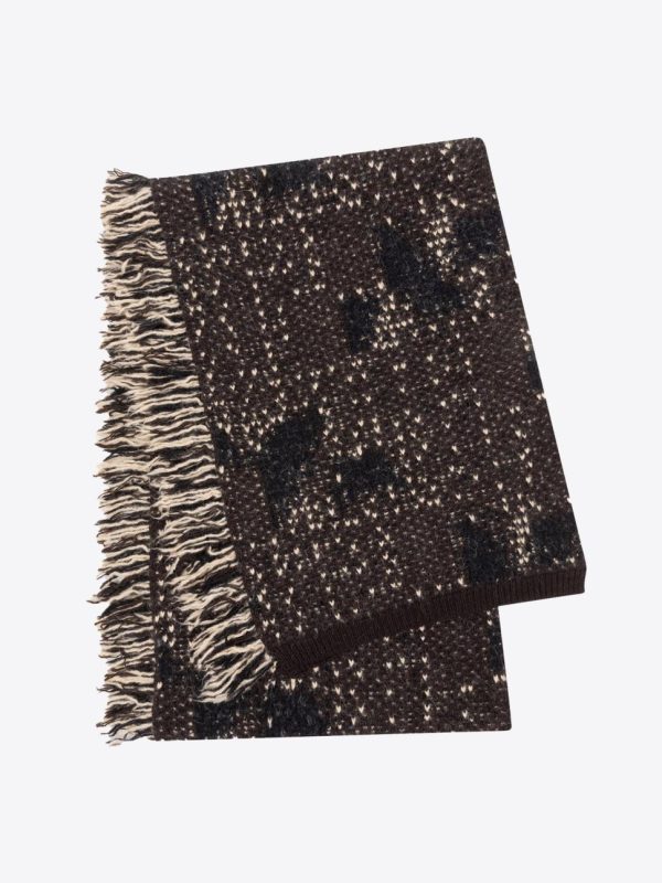 Sophisticated multicolor jacquard pattern. Elegant fringed detailing.