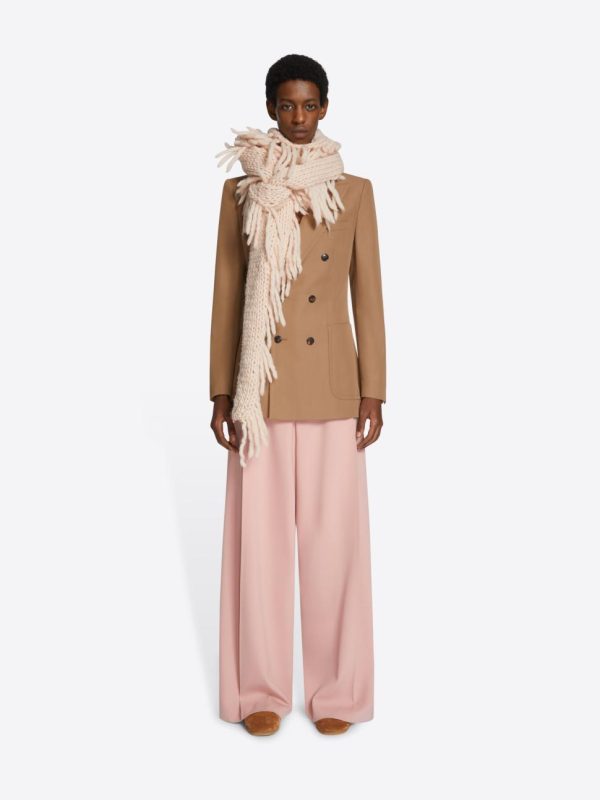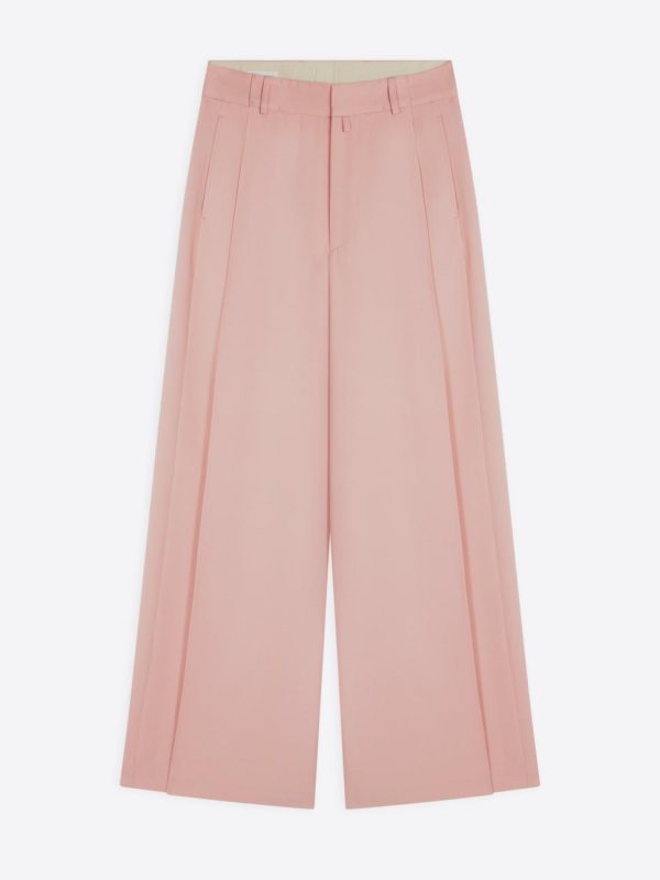 Sophisticated loose fit with elevated high rise. Contemporary wide leg silhouette with sharp pleated detailing. Functional side slit pockets and refined back jetted pockets. Finished with belt loops and secure front zip, button and hook and bar closure.