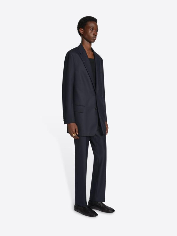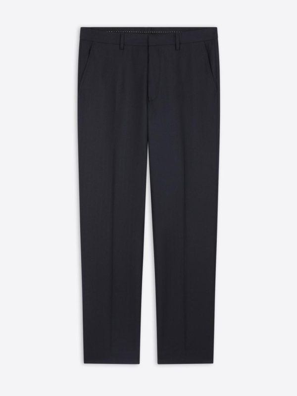 Slim fit with straight leg silhouette. Modern mid-rise waist. Functional side slit pockets and refined welt pockets. Classic belt loops. Secure front closure.