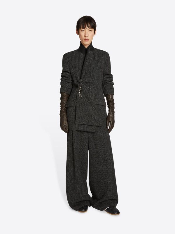 Classic regular fit designed for sophisticated comfort. Elegant double-breasted styling. Functional front flap pockets and refined welt pocket at chest. Secure front button closure for polished finishing.