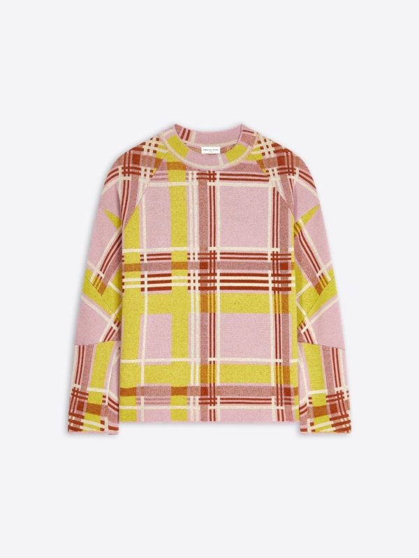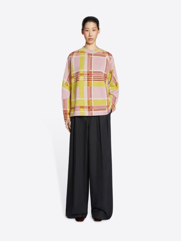 Comfortable loose fit. Elegant mock turtleneck collar.