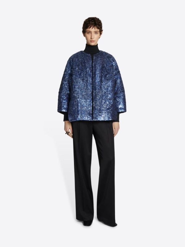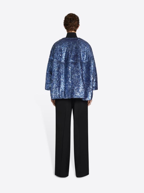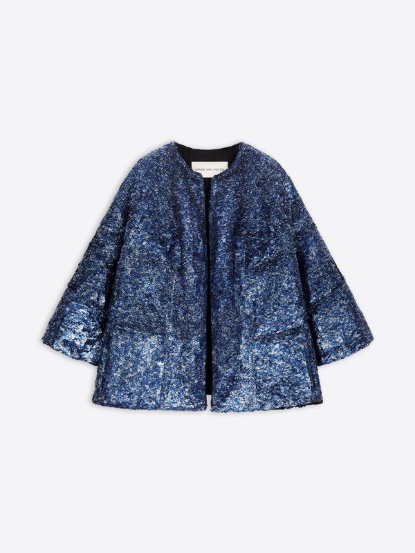 Fashion-forward boxy fit. Elegant cocoon silhouette. Stylish cropped sleeves.