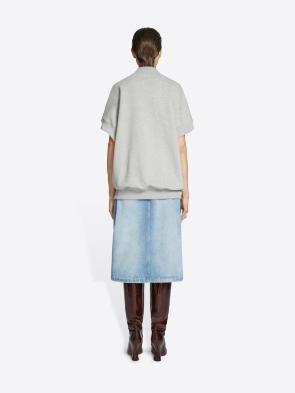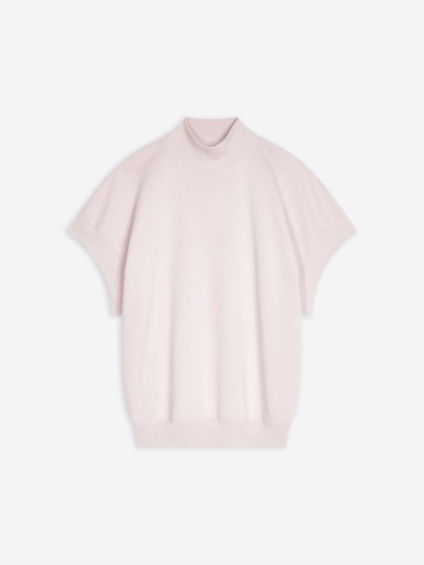 Contemporary oversized fit with dropped shoulder design. Short sleeves with stylish turtleneck collar.