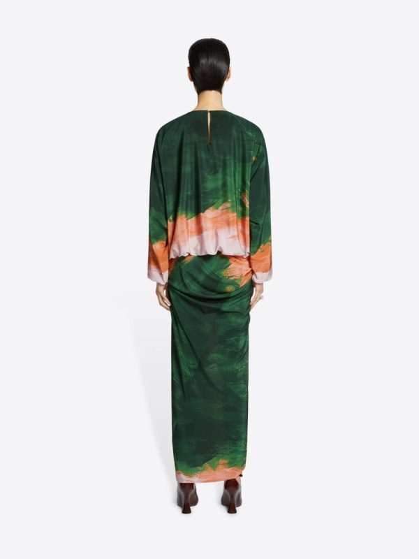Flattering loose fit. Elegant long sleeves. Comfortable elasticated sleeves and waistband. Classic round collar. Convenient back single button closure.