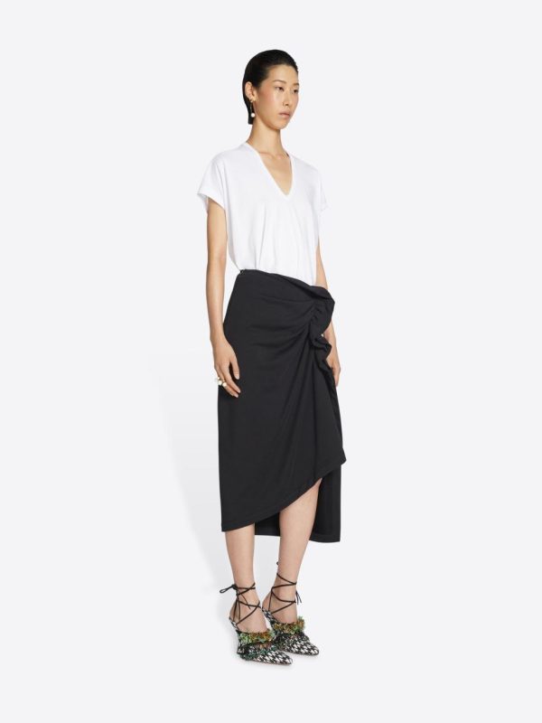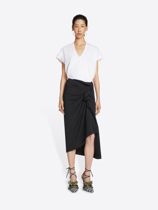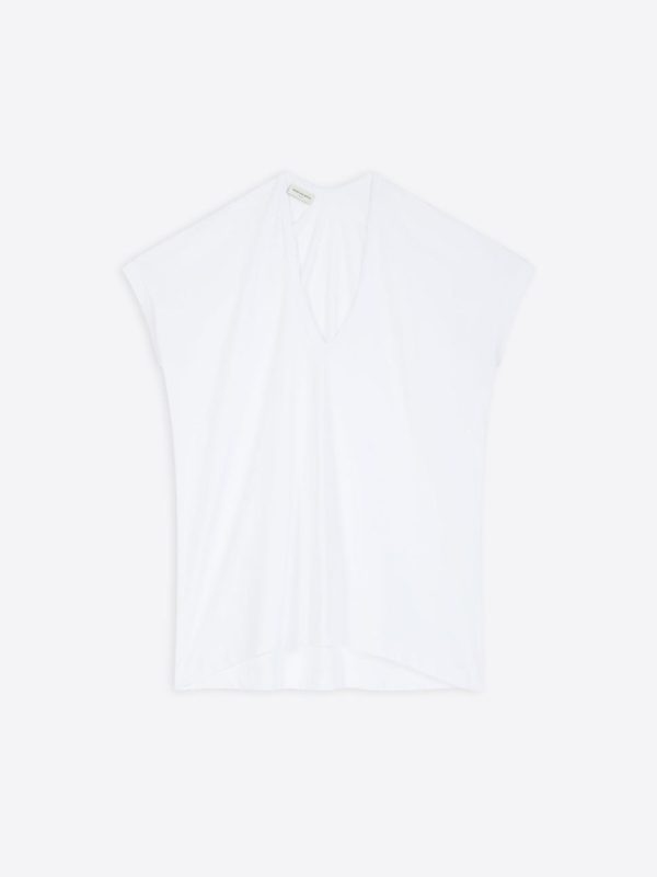 Contemporary oversized fit. Short sleeves with modern appeal. Deep V neckline for stylish versatility.