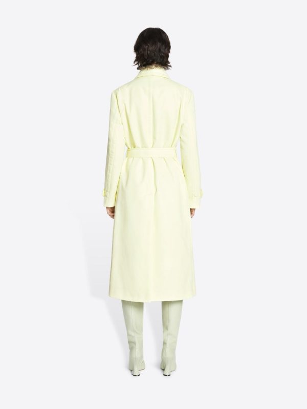 Classic regular fit. Fully lined for added comfort. Practical front slit pockets. Adjustable buttoned cuffs. Sophisticated belted design. Secure front button and belt closure.